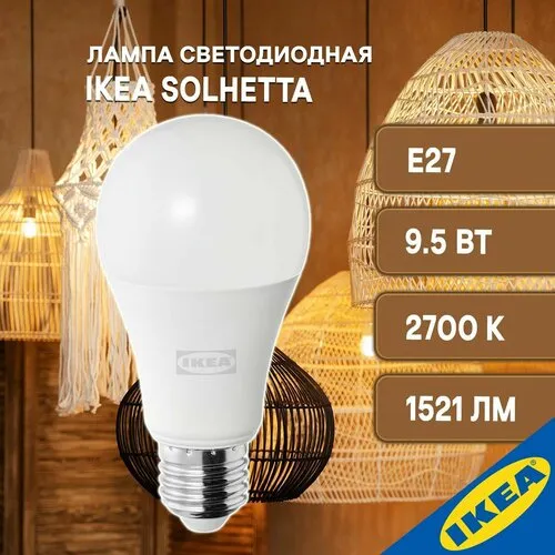 Лампа светодиодная E27, 9,5 Вт, 1521 Лм, шаровидная/молочный IKEA SOLHETTA солхетта