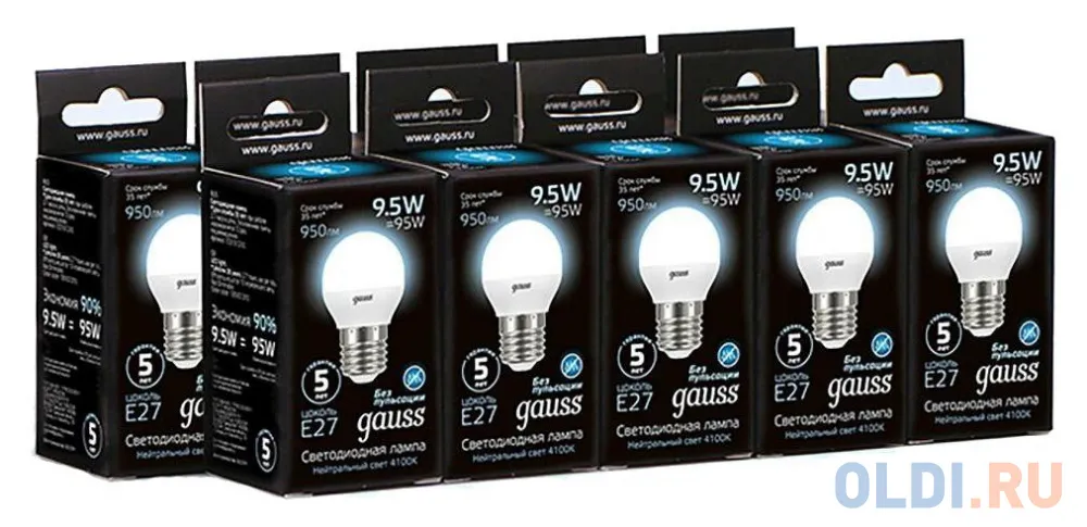 Лампа GAUSS LED Шар E27 9.5W 950lm 4100K 105102210 Упаковка 10шт