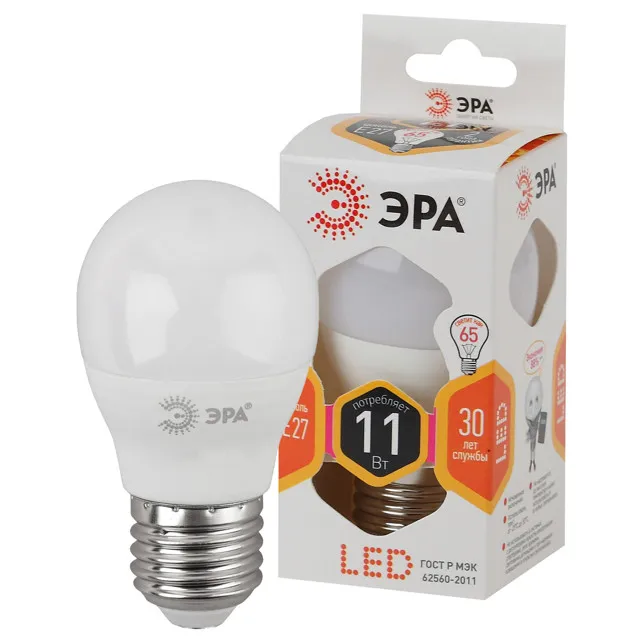 лампа светодиодная ЭРА 11Вт Е27 880Лм 2700К шар