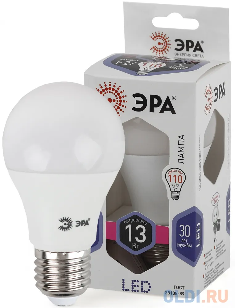 Лампа светодиодная Эра A60-13W-860-E27 13Вт цоколь:E27 6000K 220В колба:A60 (упак.:3шт)