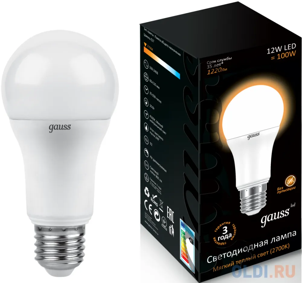 5Лампа Gauss LED Elementary A60 12W E27 2700K 23212