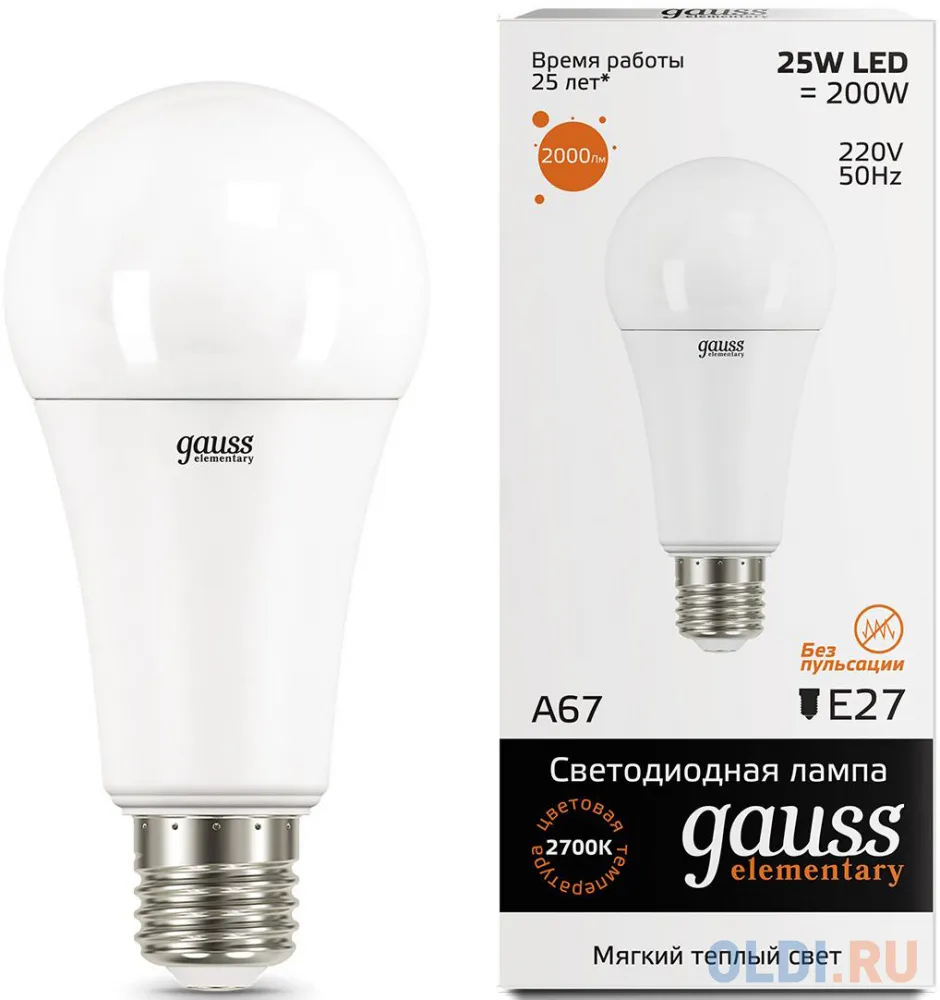 "Лампа светодиодная груша Gauss 73215 E27 25W 2700K" относится к дешёвому сегменту . Цена, предложенная магазином Олди , на 0% отличается от популярной цены (32060 руб.).