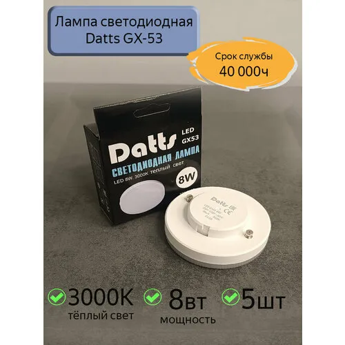 "Лампа светодиодная GX53 Datts 8W 3000k, 5шт" относится к дешёвому сегменту . Цена, предложенная магазином Яндекс.Маркет , на 0% отличается от популярной цены (960 руб.).