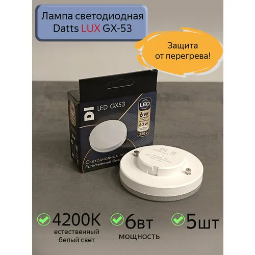 "Лампа светодиодная GX53 Datts LUX 6W 4200K, 5шт" относится к дешёвому сегменту . Цена, предложенная магазином Яндекс.Маркет , на 0% отличается от популярной цены (990 руб.).
