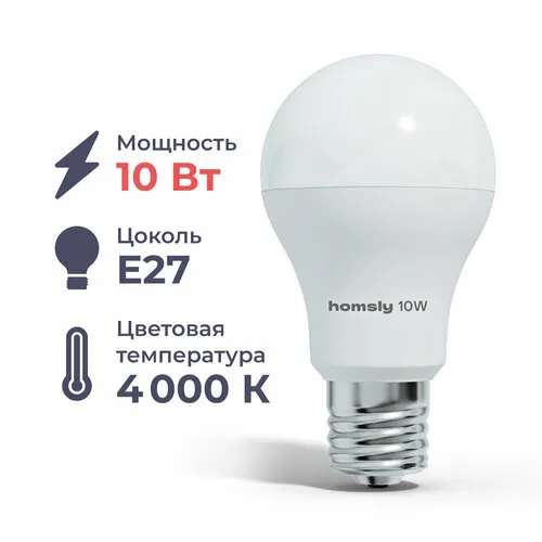 Лампа светодиодная Homsly Лампа светодиодная Homsly 1108Х/1110Х/1116Х/1120Х, A60, E27, E27, A60, 10 Вт, 4000 К
