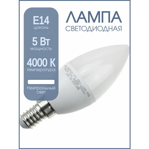 Лампа светодиодная LED-СВЕЧА-VC 6Вт свеча 4000К нейтр. бел. E14 570лм 230В IN HOME 4690612020396