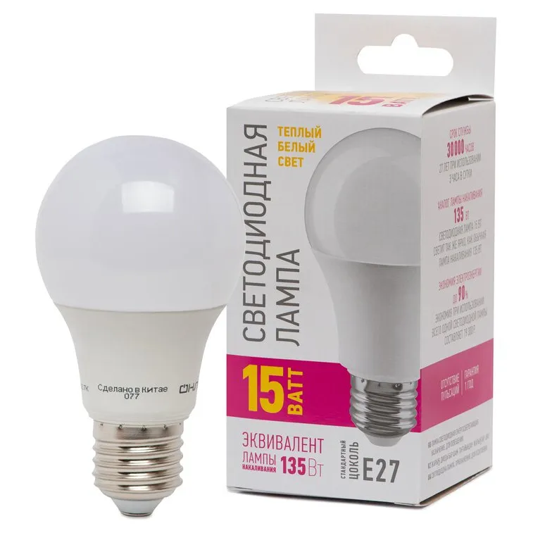 Лампа светодиодная Онлайт OLL-A60-15-230-2.7K-E27