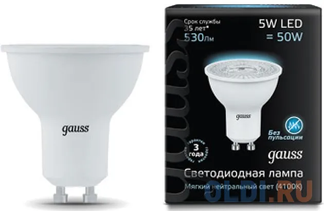 Лампа светодиодная полусфера Gauss 101505205 GU5.3 5W 4100K