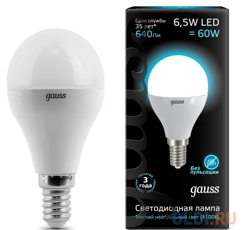 Цены на похожие товары Gauss, шар, e14, 6.5 Вт, 4100 K