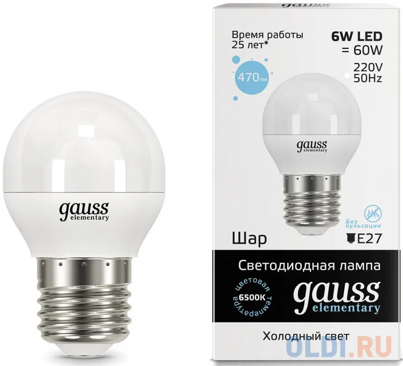 Цены на похожие товары Gauss, шар, e27, 6 Вт, 6500 K