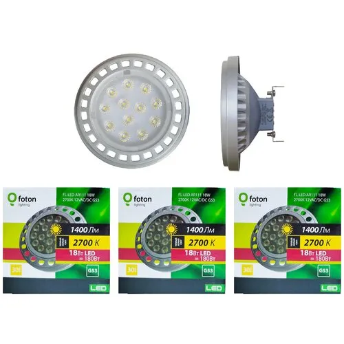 "Лампа Светодиодная Софит AR111 18W 12V G53 1400Лм 2700К Угол 30 град. D-111mm L-55mm Свет Теплый белый Foton Lighting, уп. 3шт" относится к дешёвому сегменту . Цена, предложенная магазином Яндекс.Маркет , на 0% отличается от популярной цены (4050 руб.).