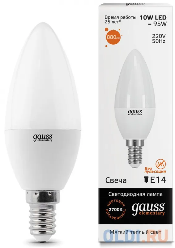 "Лампа светодиодная свеча Gauss 33110 E14 10W 2700K" относится к дешёвому сегменту . Цена, предложенная магазином Олди , на 0% отличается от популярной цены (1750 руб.).