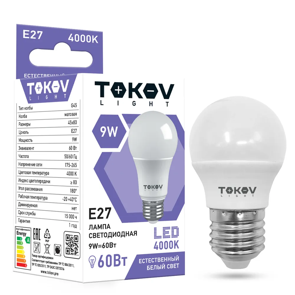 Лампа светодиодная Tokov Electric Light матовая шарик 9w цоколь E27 естественный свет
