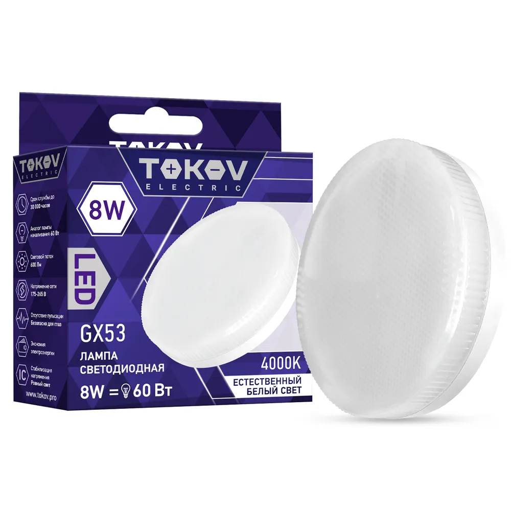 Лампа светодиодная Tokov Electric таблетка 8w цоколь GX53 естественный свет