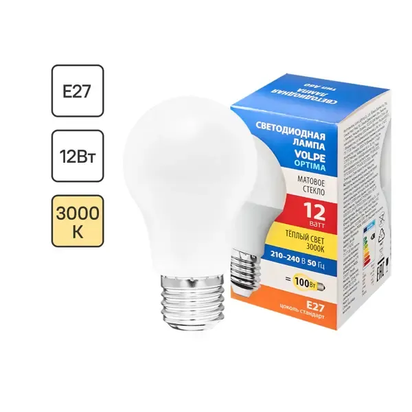 Лампа светодиодная Volpe E27 220-240 В 12 Вт груша матовая 1000 лм теплый белый свет