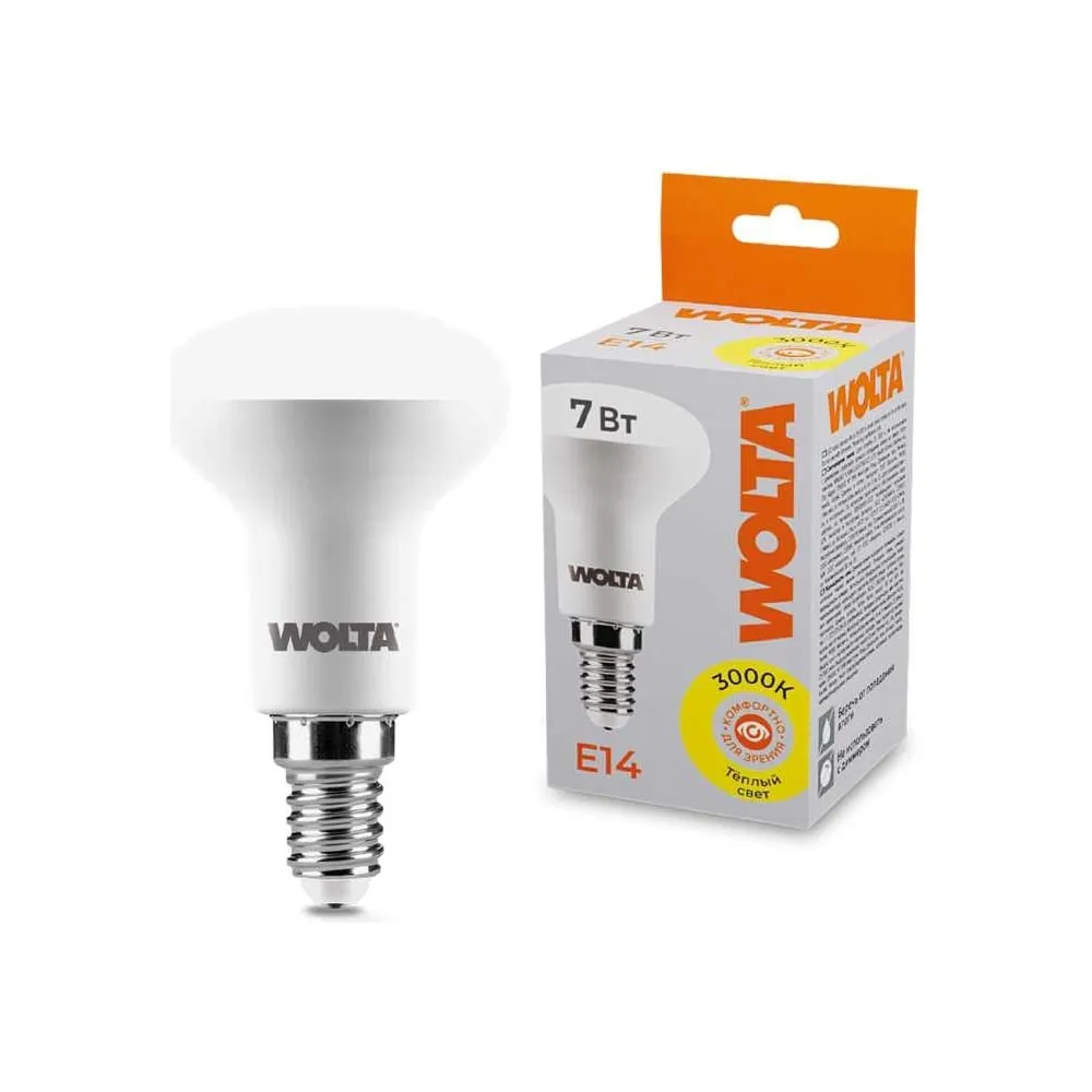 Цены на похожие товары Wolta, рефлекторная, 220 В, e14, 7 Вт, 80 Ra, 650 Лм, 3000 K