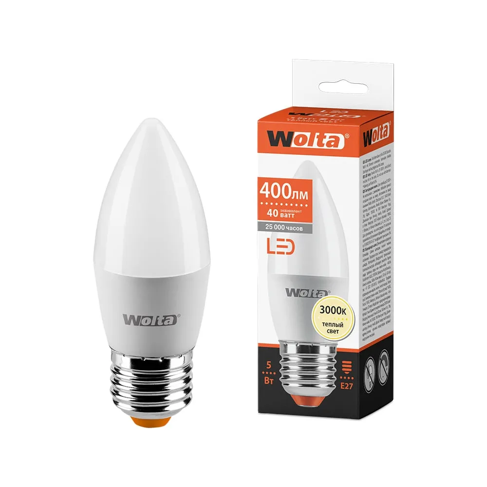 Цены на похожие товары Wolta, 3000 K, 400 Лм, 80 Ra, 5 Вт, C, e27, свеча, 220 В