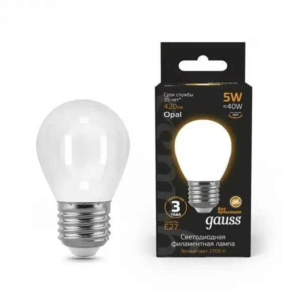 4Лампочка E27 5W 2700K 1/10/50 Gauss Filament 105802105