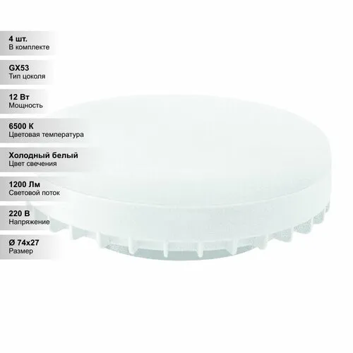"Лампочка GX53L, Холодный белый свет, GX53, 12 Вт, Светодиодная, 4 шт. Лампа с/д LEEK LE SPT 12W 6K GX53 (100)" относится к дорогому сегменту . Цена, предложенная магазином Яндекс.Маркет , на 468% отличается от популярной цены (220 руб.).
