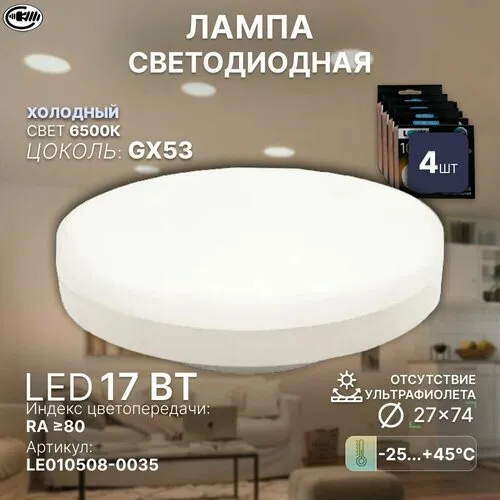 "Лампочка GX53L, Холодный белый свет, GX53, 17 Вт, Светодиодная, 4 шт. Лампа с/д LEEK LE SPT 17W 6K GX53 (100)" относится к дешёвому сегменту . Цена, предложенная магазином Яндекс.Маркет , на 0% отличается от популярной цены (1420 руб.).