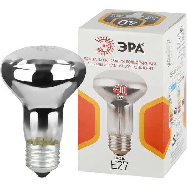 Лампочка накаливания E27 40W ЭРА R63-40-E27-230