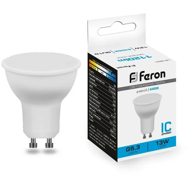Лампочка рефлекторная Feron 38193 LB-960 MR16 GU10 13W 6400K