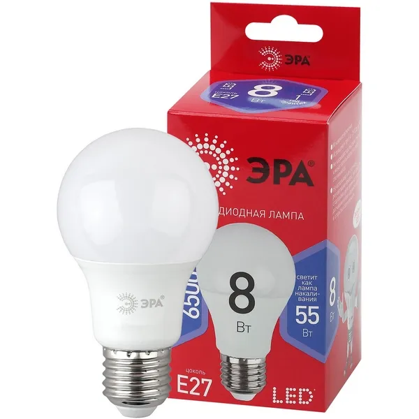 Лампочка светодиодная E27 8W ЭРА LED A60-8W-865-E27 R