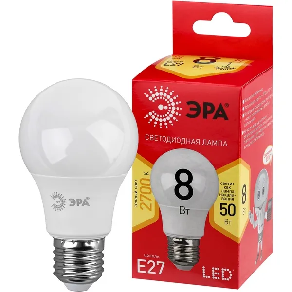 Лампочка светодиодная E27 8W ЭРА LED A55-8W-827-E27 R