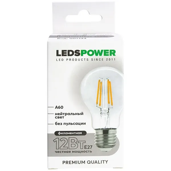 "Лампочка светодиодная филаментная E27 12Вт 4000K LEDS POWER 007144 LEDS Power" относится к среднему сегменту . Цена, предложенная магазином Lu.ru , на 2% отличается от популярной цены (310 руб.).