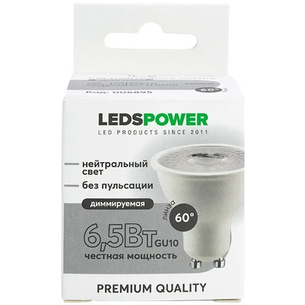 "Лампочка светодиодная GU10 6,5Вт 4000K диммируемая LEDS POWER 006895 LEDS Power" относится к среднему сегменту . Цена, предложенная магазином Lu.ru , на 2% отличается от популярной цены (300 руб.).