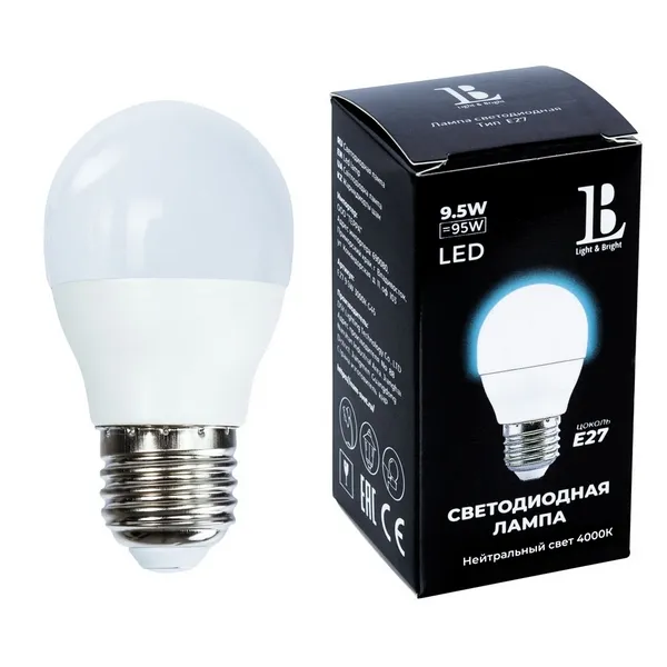 Лампочка светодиодная L&B E27-9,5W-4000K-G45_lb
