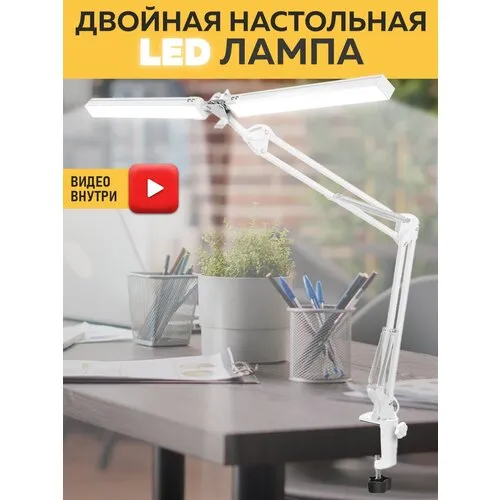 LED лампа настольная светодиодная, двойная 3ppl (Белый) на струбцине