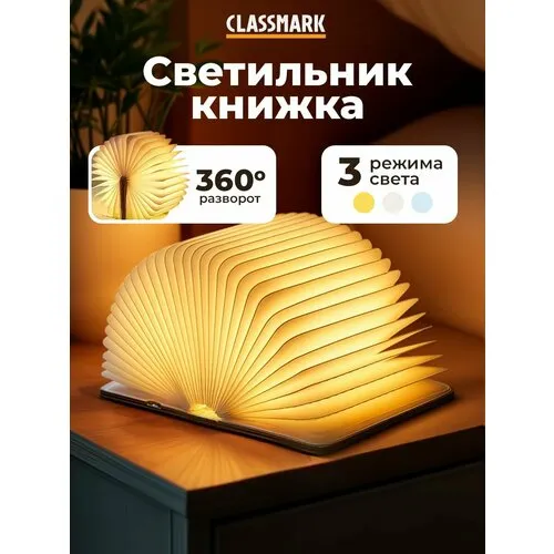 LED Ночник, светильник светодиодный Classmark, 3 вида подсветки, аккумуляторный, с зарядкой от USB, лампа книга для сна