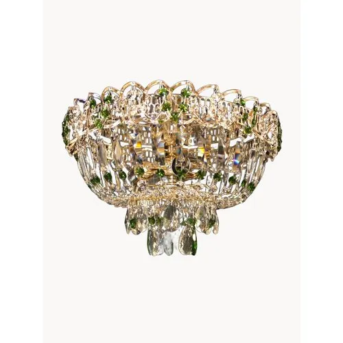 Люстра Хрустальная "Катерина" Журавлик 3 лампы/Золото Зеленая