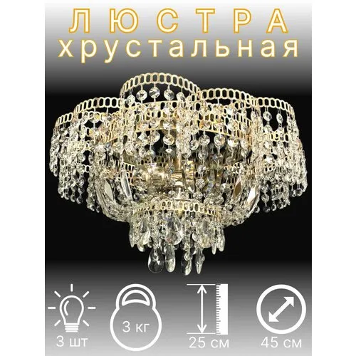 Подвесная люстра хрустальная "Алёнка II"диаметр 45 см, 3 лампы, Е27, 60 Вт, люстра Гусь Хрустальный