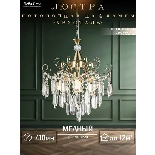 "Люстра хрустальная медь подвесная с прозрачными хрустальными подвесками на 4 лампы E27, регулировка по высоте" относится к дешёвому сегменту . Цена, предложенная магазином Яндекс.Маркет , на 0% отличается от популярной цены (12180 руб.).