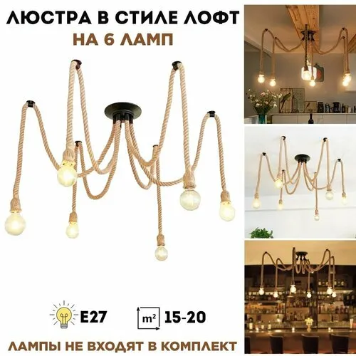 Люстра потолочная подвесная "Паук канат" в стиле лофт на 6 ламп ANYSMART