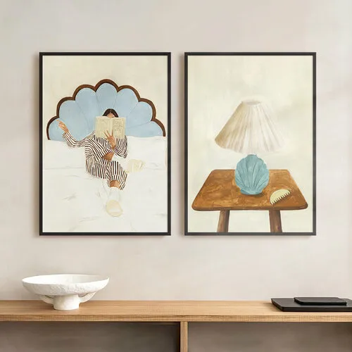Набор постеров "Девушка с книгой и лампа" 2 шт 40x50 для интерьера на стену