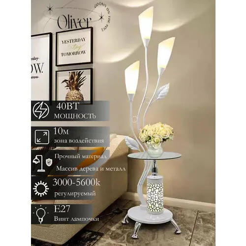 Напольная лампа со столиком Стеклянная настольная лампа белое