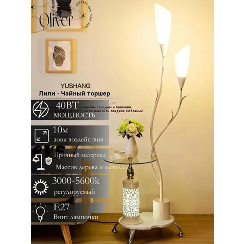 Напольная лампа со столиком Стеклянная настольная лампа белое