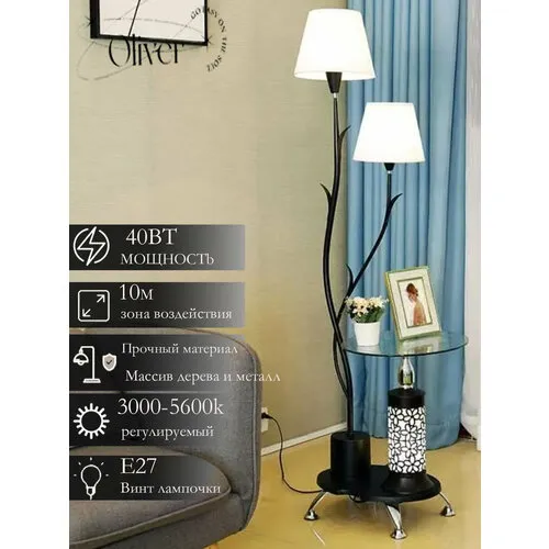 Напольная лампа со столиком Стеклянная настольная лампа