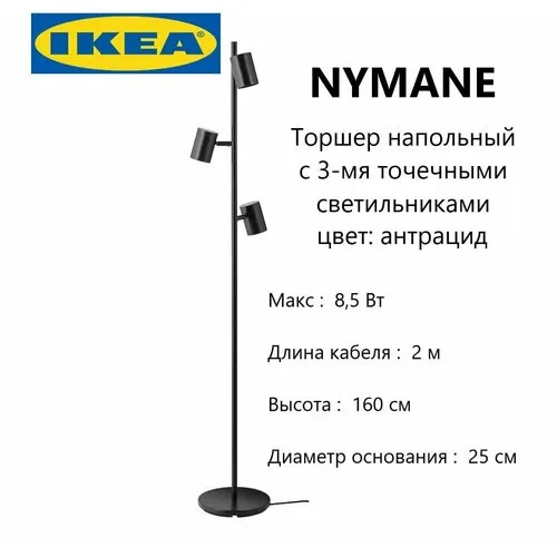 Напольный светильник NYMANE 804.777.34, 3 лампочки, GU10, чёрный