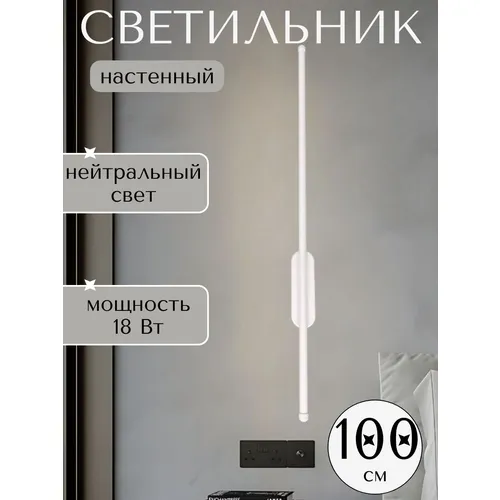 Настенная лампа с овальным основанием 100 см, для спальни, гостиной, кухни Wogow 017 Белый