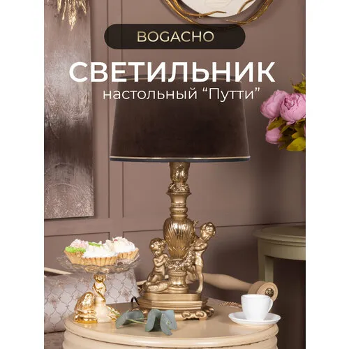 Настольная лампа Bogacho Путти бронзового цвета с кофейным абажуром