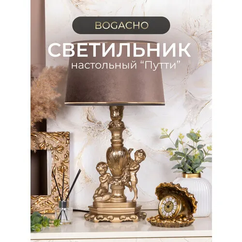 Настольная лампа Bogacho Путти бронзового цвета с кофейным абажуром