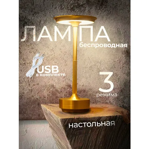Настольная лампа интерьерная беспроводная светодиодная сенсорная K-8 золотая, 3W, декоративный регулируемый свет