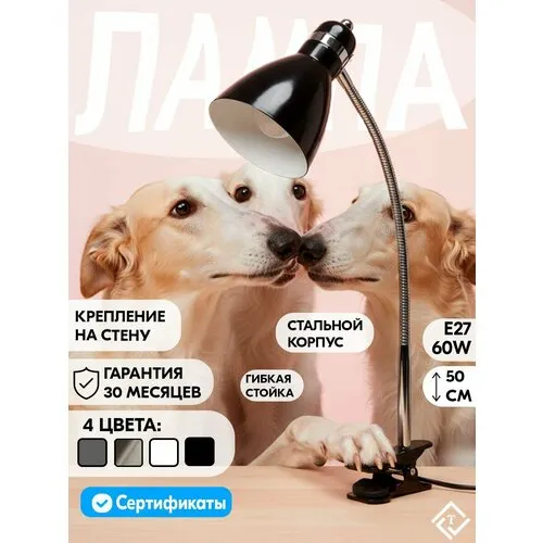 Настольная лампа на прищепке светильник МТ2020 Черный глянец E27 220В Ultra LIGHT