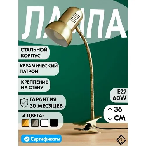 Настольная лампа на прищепке светильник МТ2023 Античная латунь золотой E27 220В Ultra LIGHT