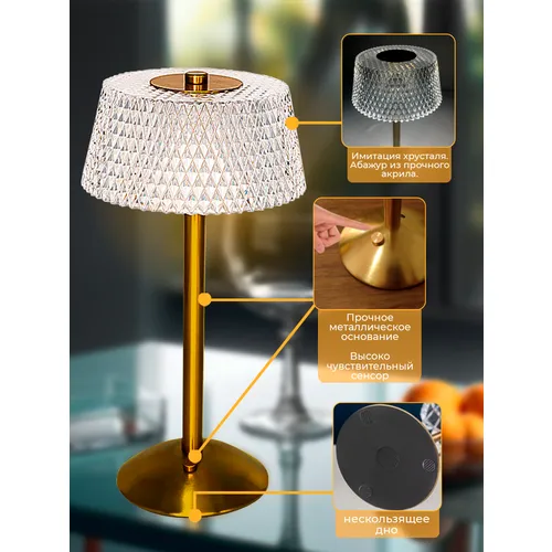 Лампа настольная беспроводная, металлическая, светильник настольный сенсорный , ночник в спальню, лампа светодиодная