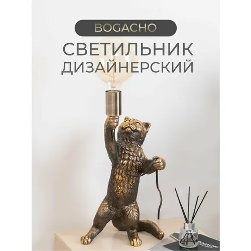 Настольная лампа светильник из мрамора Bogacho Кот Эдисон с лампой бронзовый, ручная работа